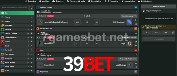 O 39bet oferece uma grande seleção de opções de apostas em e-sports com probabilidades competitivas